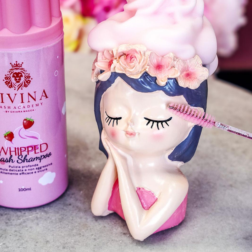 Il Divina Whipped Lash Shampoo è lo shampoo per ciglia più goloso e femminile di sempre: una mousse soffice come panna montata, racchiusa in una confezione a forma di whipped cream che conquista al primo sguardo.
